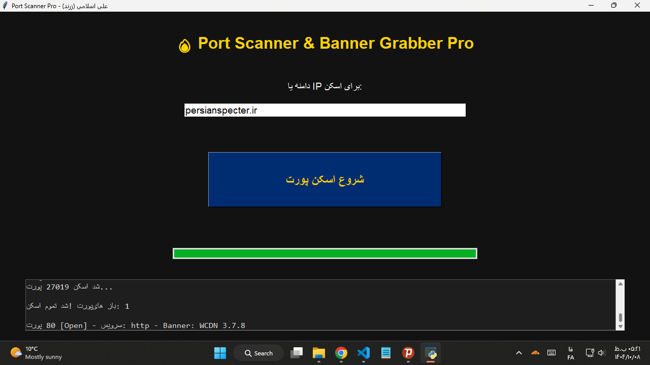 سلام سایبریهای عزیز! 💪🇮🇷 یه ابزار خفن پایتون ساختم برای اسکن پورتهای سرور و سایت (کاملاً قانونی و white-hat):...